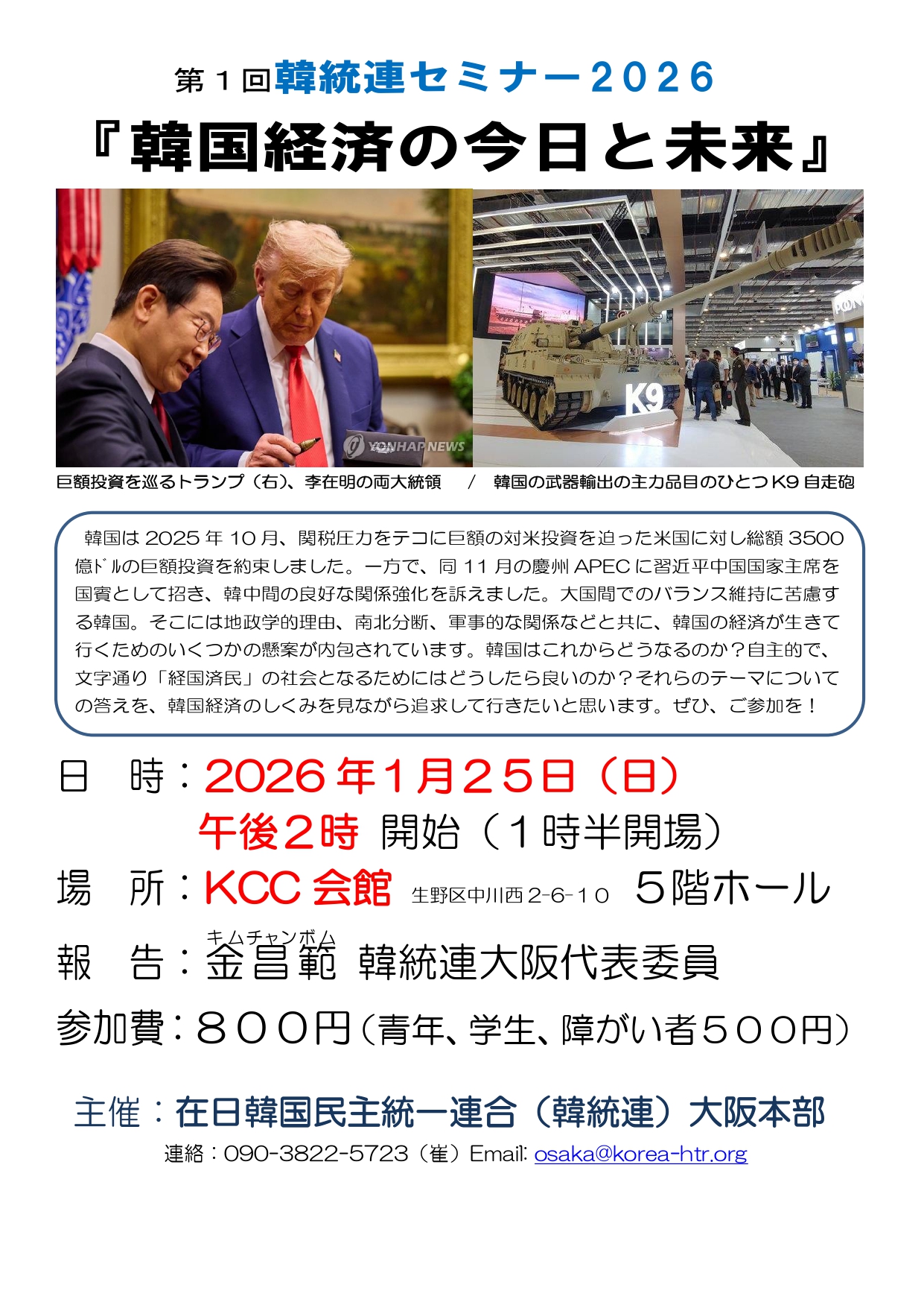 韓統連セミナー2026第1回「韓国経済今日と未来」