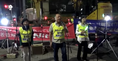 支援する会は10月9日にも品川駅前で宣伝活動を展開。韓統連の李俊一(イ・チュニル)事務長がアピールした。李事務長は日東電工に対して「労働者の訴えを無視するだけでなく、労組や支援者に弾圧を加えている。明白な違法行為だ」と糾弾。「韓国政府は労組に対して問題解決を約束した。勝利は目前まで来ている。日東電工は弾圧をやめ、交渉に応じるべきだ」と強調した。
