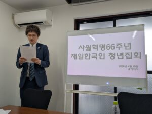 在日韓国青年同盟(韓青)は4月19日、三重県四日市市内で「4月革命66周年 在日韓国人青年集会」を開催した。 中央本部の韓成祐(ハン・ソンウ)委員長が主催者あいさつ。「4月革命を契機に誕生したわたしたち韓青は、この戦争の … 続きを読む 韓青が4月革命66周年記念集会を開催…4月革命完遂を決意