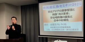 広島本部は12月14日、広島市内で「韓統連広島セミナー2025」を開催した。 尹康彦(ユン・ガンオン)代表委員が主催者あいさつ。「昨年12月、戒厳令を宣布した尹錫悦(ユン・ソンニョル)前大統領を韓国民衆の力で弾劾・罷免し … 続きを読む 広島本部が「韓統連広島セミナー2025」開催…金昌五副委員長が講演