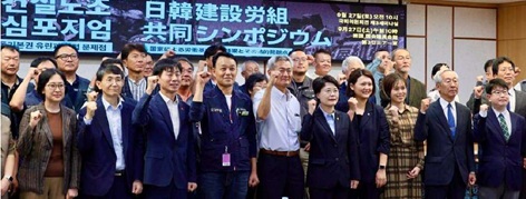 全日本建設運輸連帯労働組合(全日建)が発行する関西生コン弾圧事件ニュースによると、「日韓建設労組共同シンポジウム~国家による労働基本権の蹂躙(じゅうりん)とその法的問題点」が9月27日、ソウルの国会議員会館で開催された。全日建と韓国建設労組が共催した。菊池進、チョ・スンホ両労組委員長のあいさつに続き進歩党と社会民主党の国会議員が激励あいさつし、両労組と日韓の研究者・弁護士が日韓で起きた弾圧事件の実態とその問題点を明らかにした。最後に共同声明「強固な日韓連帯で弾圧を突破しよう! 再び飛躍する労働組合をつくろう」を採択した。