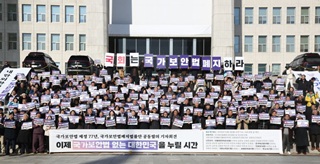 国家保安法廃止国民行動は同法制定から77年となる12月1日、国会本庁前で記者会見を開催し、923の市民社会団体の賛同を受けて32人の国会議員が「国家保安法廃止法案」を共同発議したと発表した。これは2004年以後では最大規模の共同発議。記者会見には同法による被害者とその家族が参加し、「国家保安法は過去の遺物ではなく現在進行形の暴力」だと証言した。参加者は記者会見文を通じて「国家保安法の77年はねつ造と人権じゅうりんの歴史だった」とし、「第22代国会はすぐさま国家保安法廃止に乗り出さなければならない」と強く要求した。