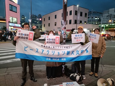韓統連と韓青は12月20日、都内で「ピースアクション新大久保」を開催した。参加者は「米国による韓国への経済収奪反対」「韓米日軍事同盟反対」のプラカードを掲げて通行人にアピールした。 韓統連の李・・・続きを読む