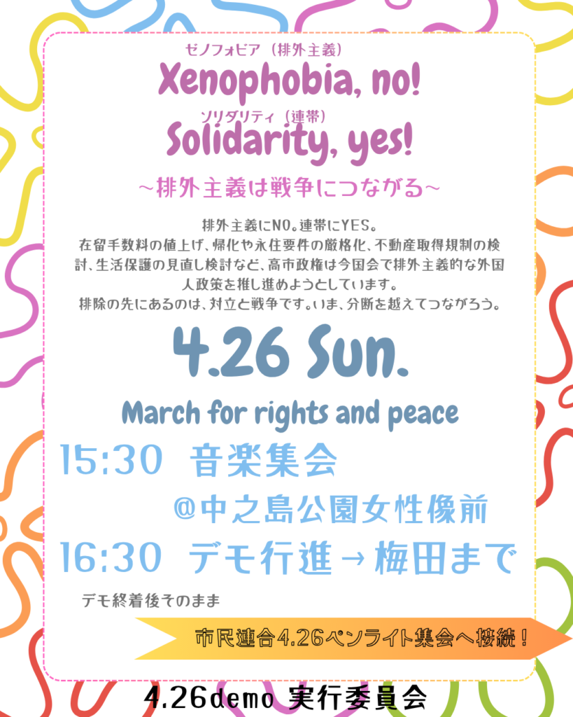 ゼノフォビア(排外主義)NO! ソリダリティ(連帯)YES! 4.26デモ